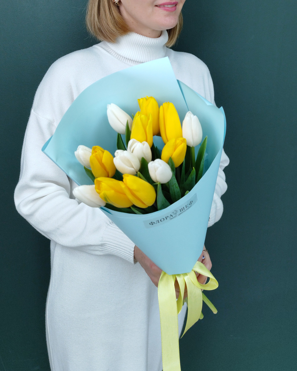 Букет из 15 белых и желтых тюльпанов – это нежный, солнечный и изысканный подарок, который станет воплощением тепла и гармонии. Белые тюльпаны символизируют чистоту и искренность, а желтые добавляют композиции радость и оптимизм.