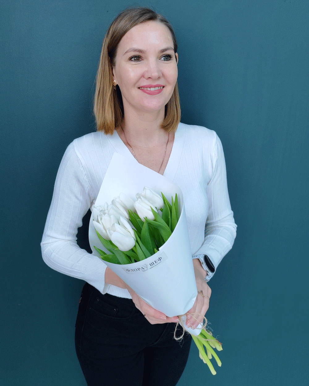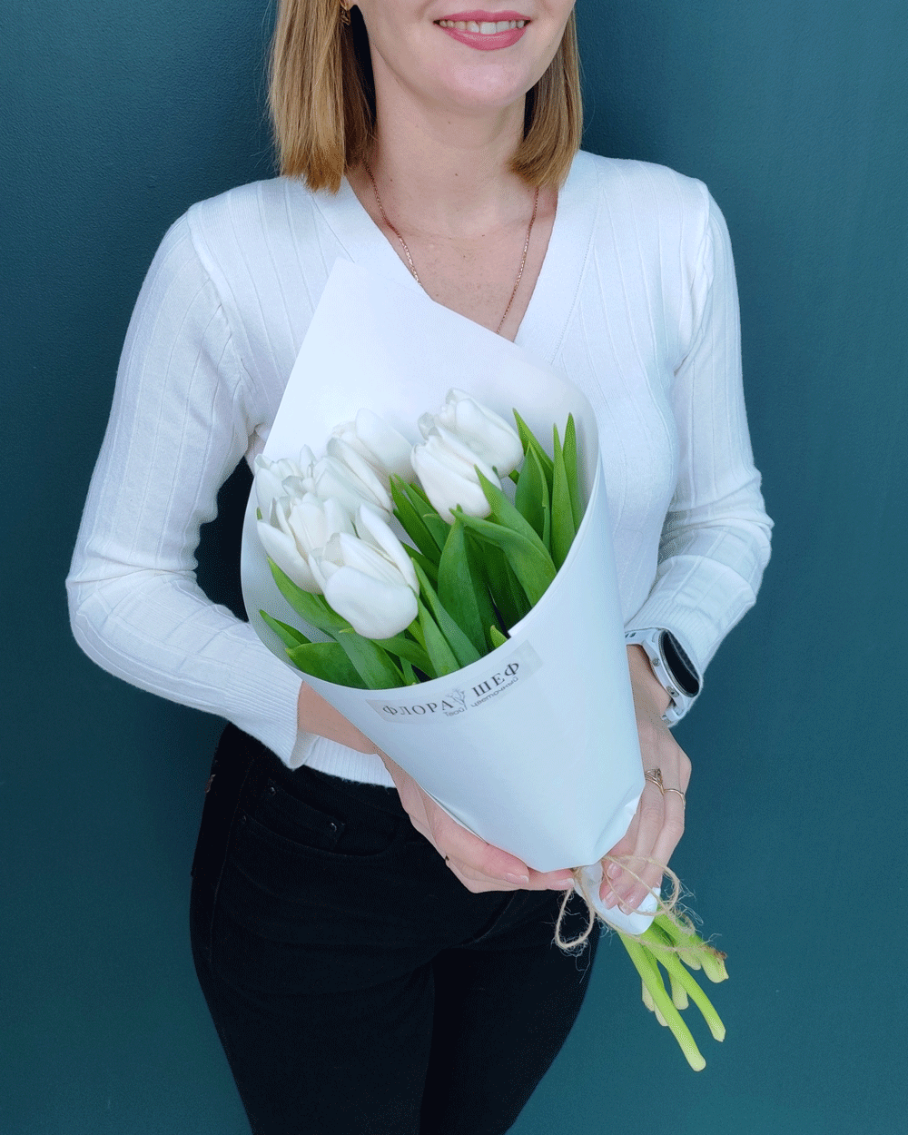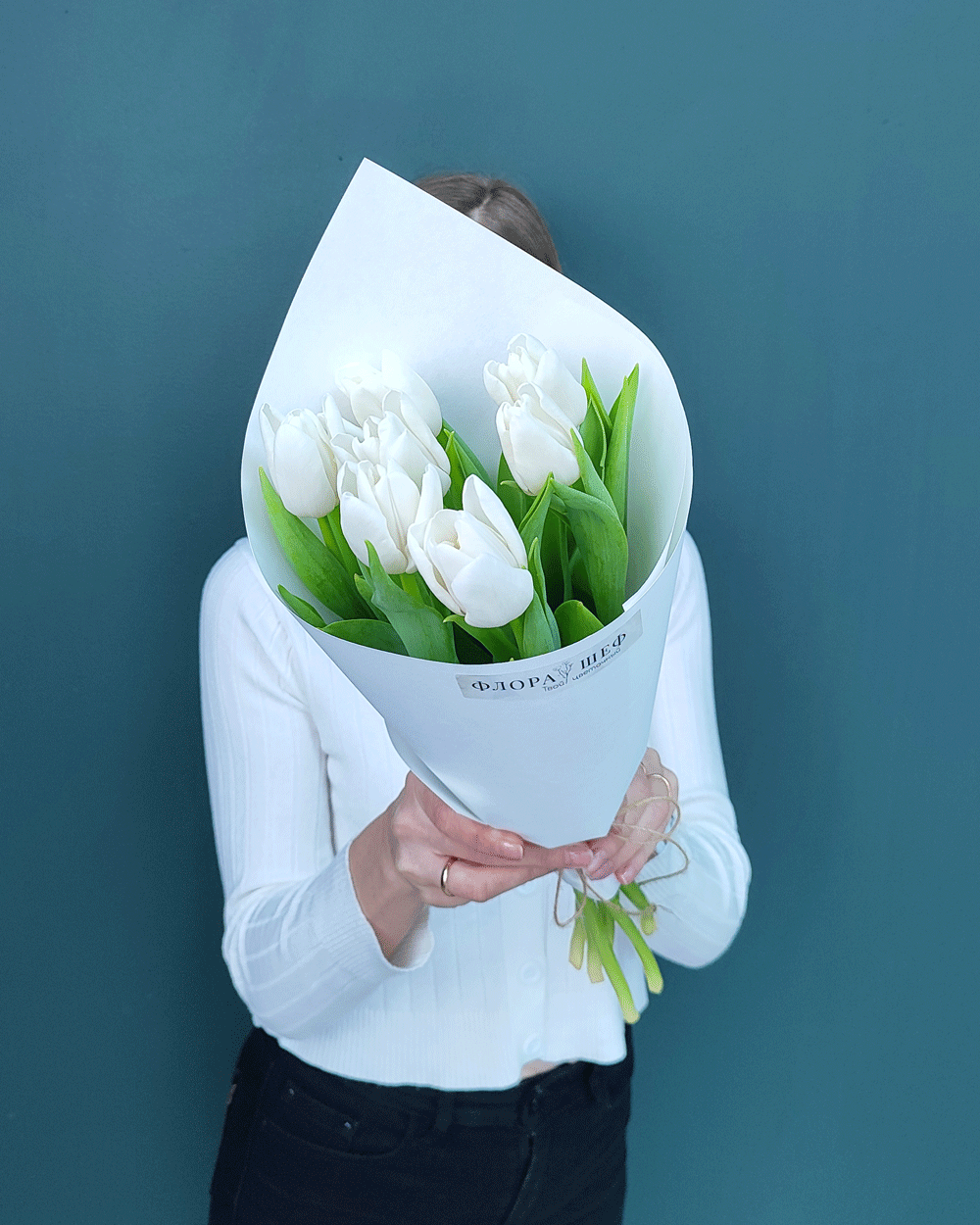 Иногда краткость — лучший способ сказать о главном. Этот небольшой, но очень стильный букет из 7 белоснежных тюльпанов станет идеальным знаком внимания, милым комплиментом или дополнением к основному подарку. Лаконичность белого цвета и свежесть весенней зелени — ничего лишнего, только эстетика.