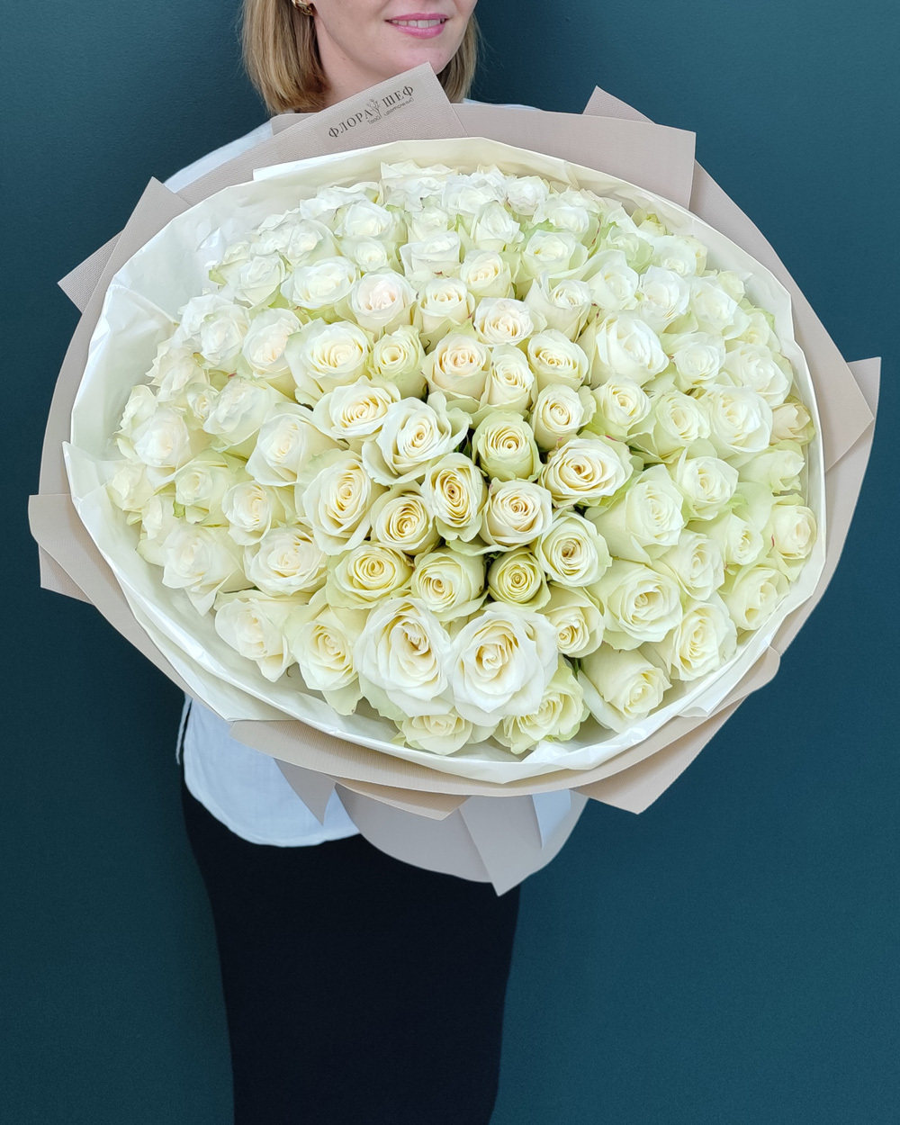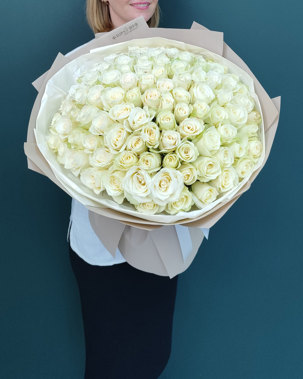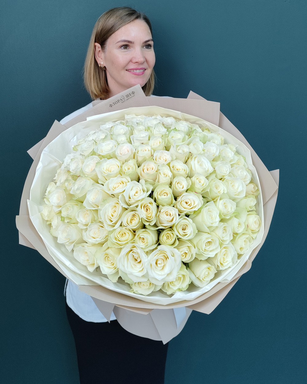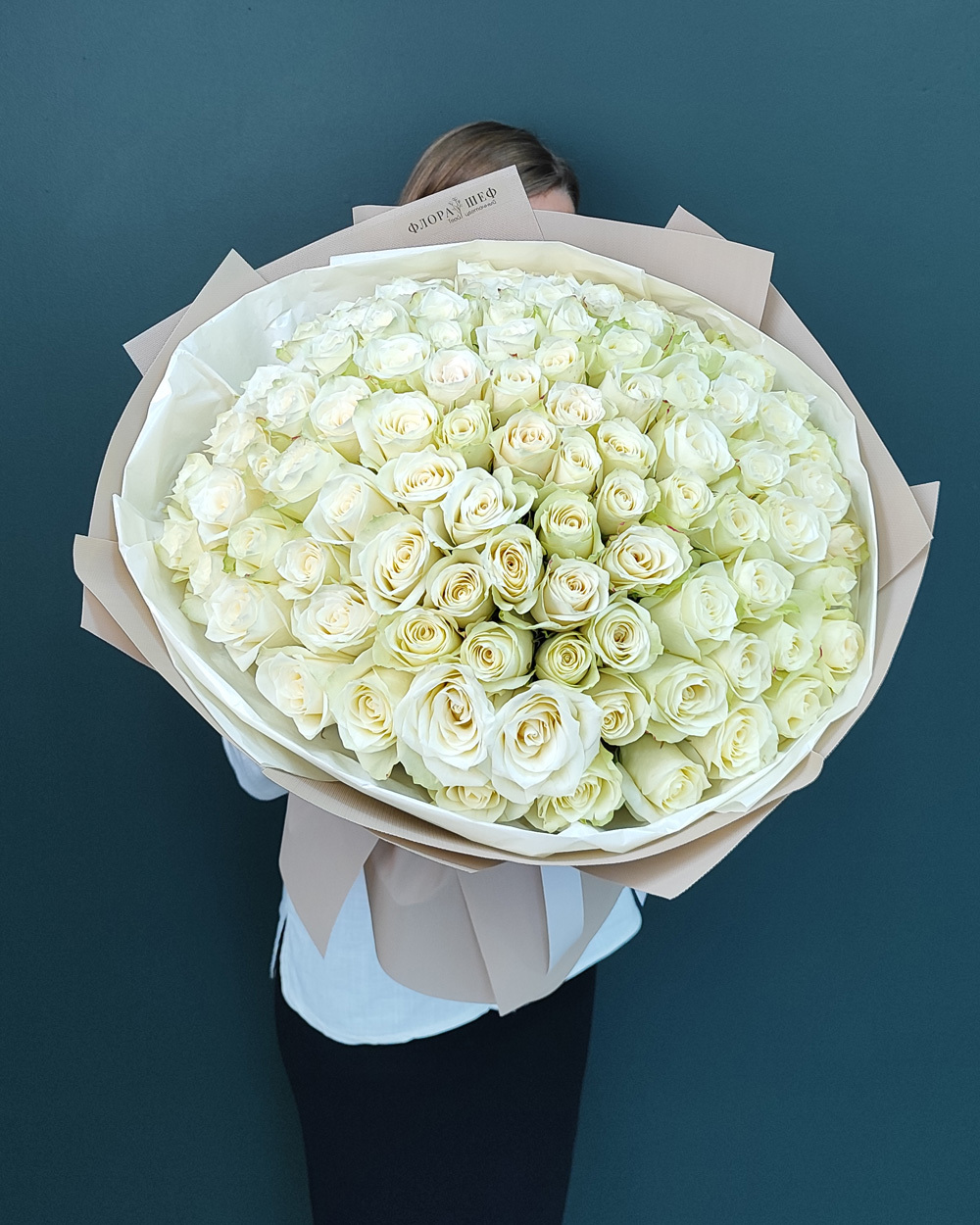 Букет из 101 белой розы – это универсальный и роскошный подарок, который отлично подойдет для любого праздника, включая 14 февраля, день рождения и 8 марта.