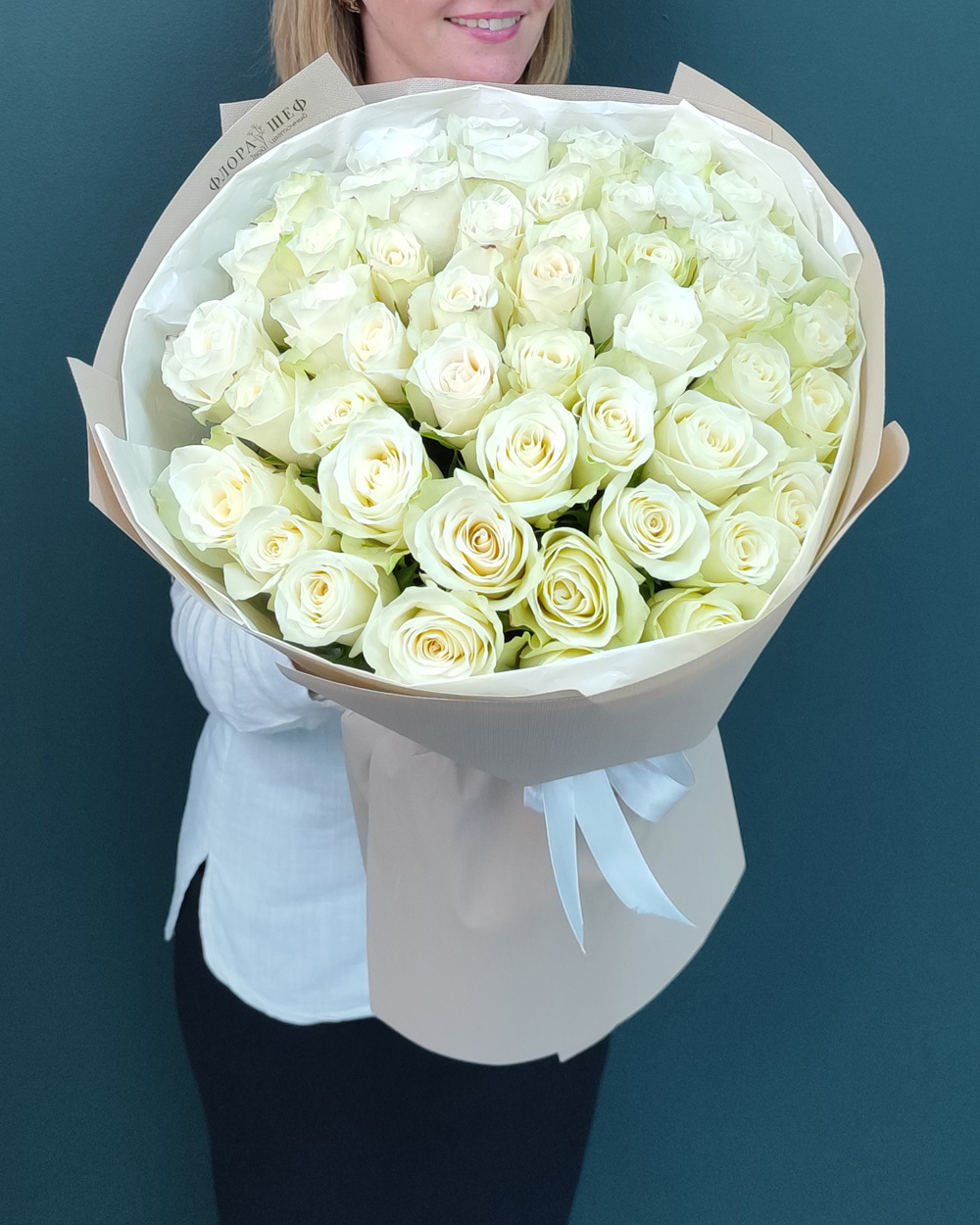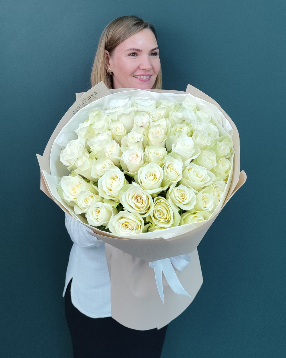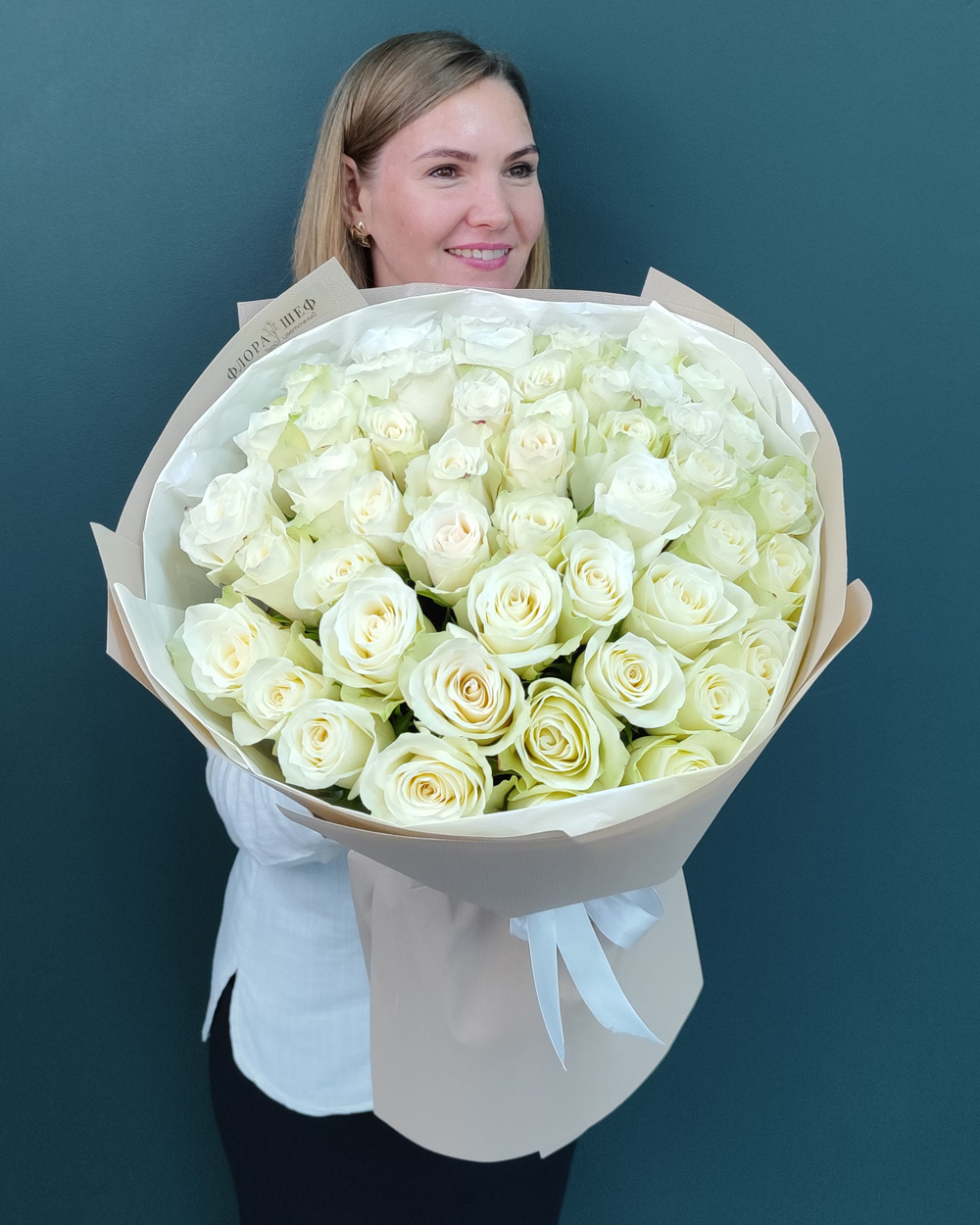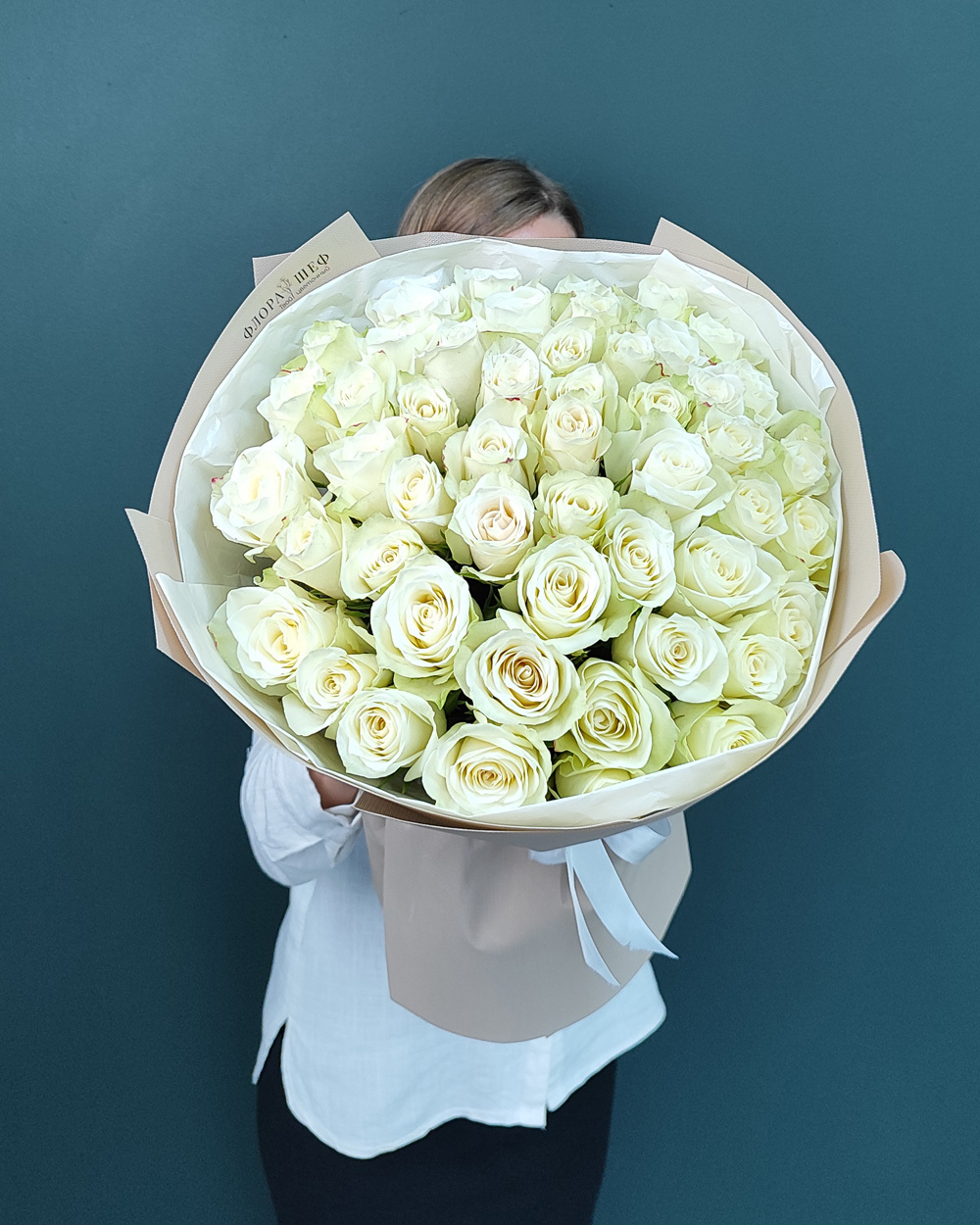 Этот элегантный букет из 51 белоснежной розы – идеальный подарок для самых важных моментов жизни! Собранный с заботой и вниманием к деталям, он будет бережно завернут в крафтовую бумагу и перевязан декоративным шпагатом.