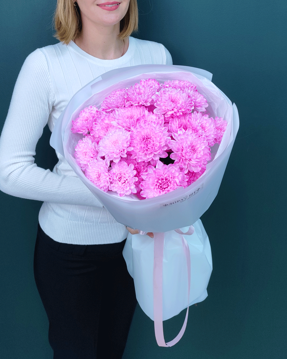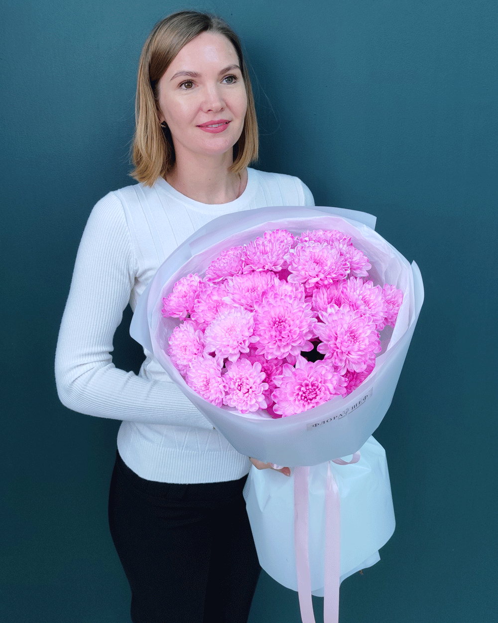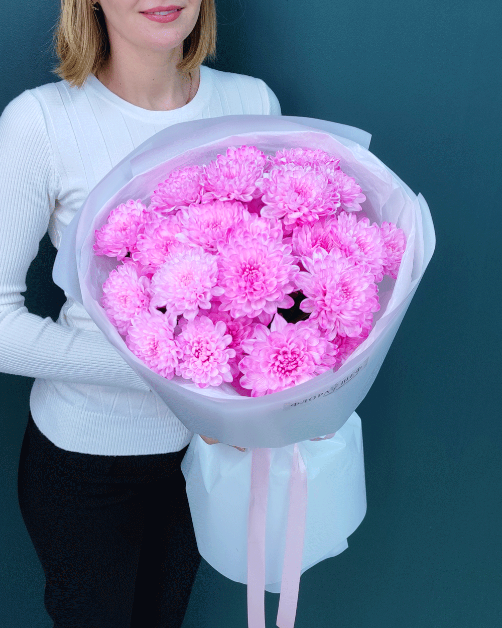 Нежный букет из 5 веток розовой кустовой хризантемы –идеально подходит для знака внимания, романтического комплимента, благодарности, подарка подруге, дня рождения или просто чтобы поднять настроение близкому человеку без лишнего пафоса.