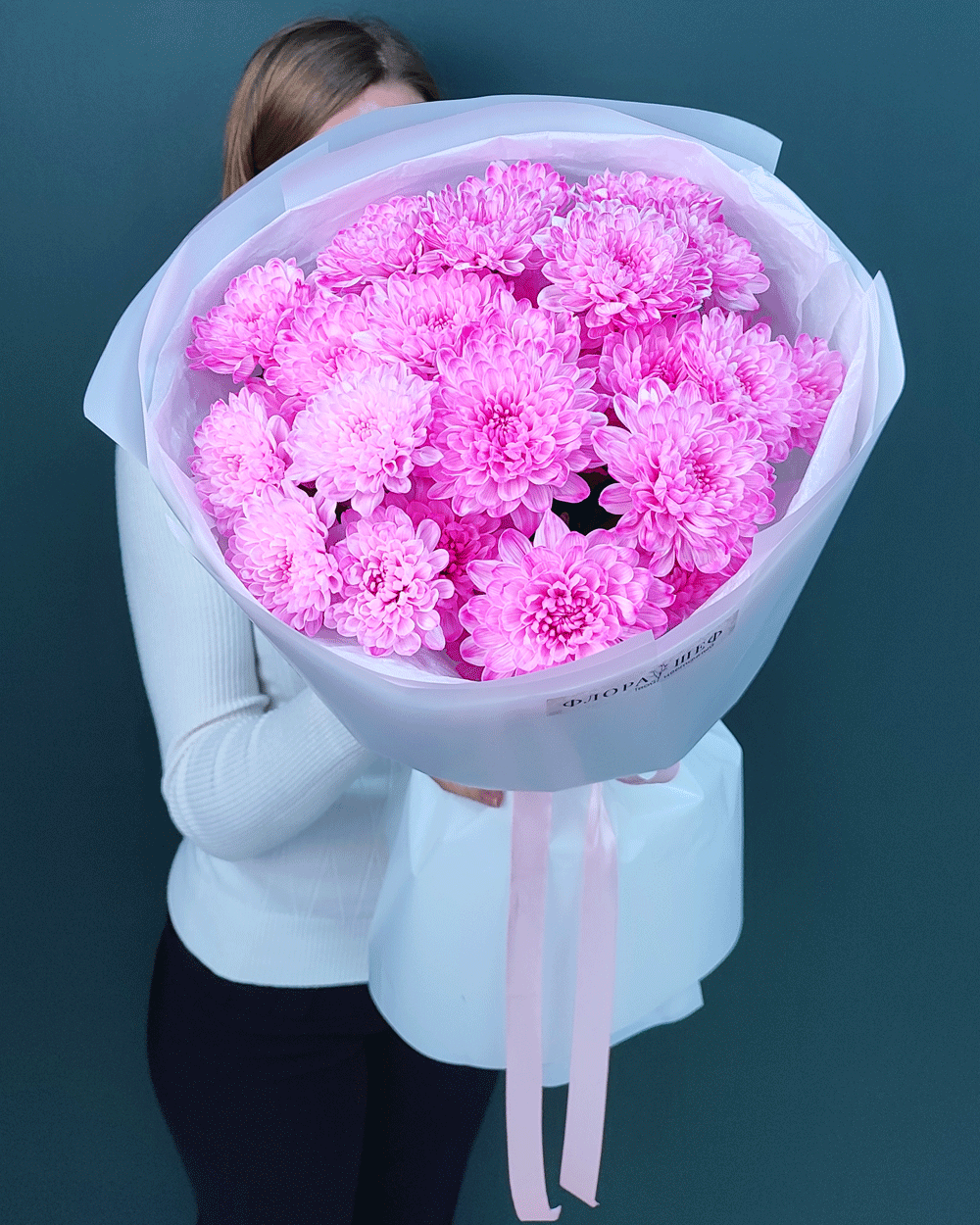 Розовая кустовая хризантема отличается исключительной стойкостью и является одним из самых долговечных цветов – сохраняет свежесть до 2 недель, радуя получателя своей естественной красотой и жизнерадостностью.
