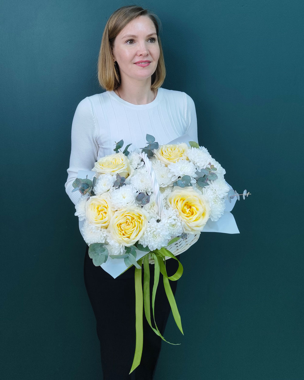 Рекордная стойкость: Хризантема и эвкалипт — одни из самых долгоживущих растений во флористике, что гарантирует сохранение красоты композиции на долгое время.