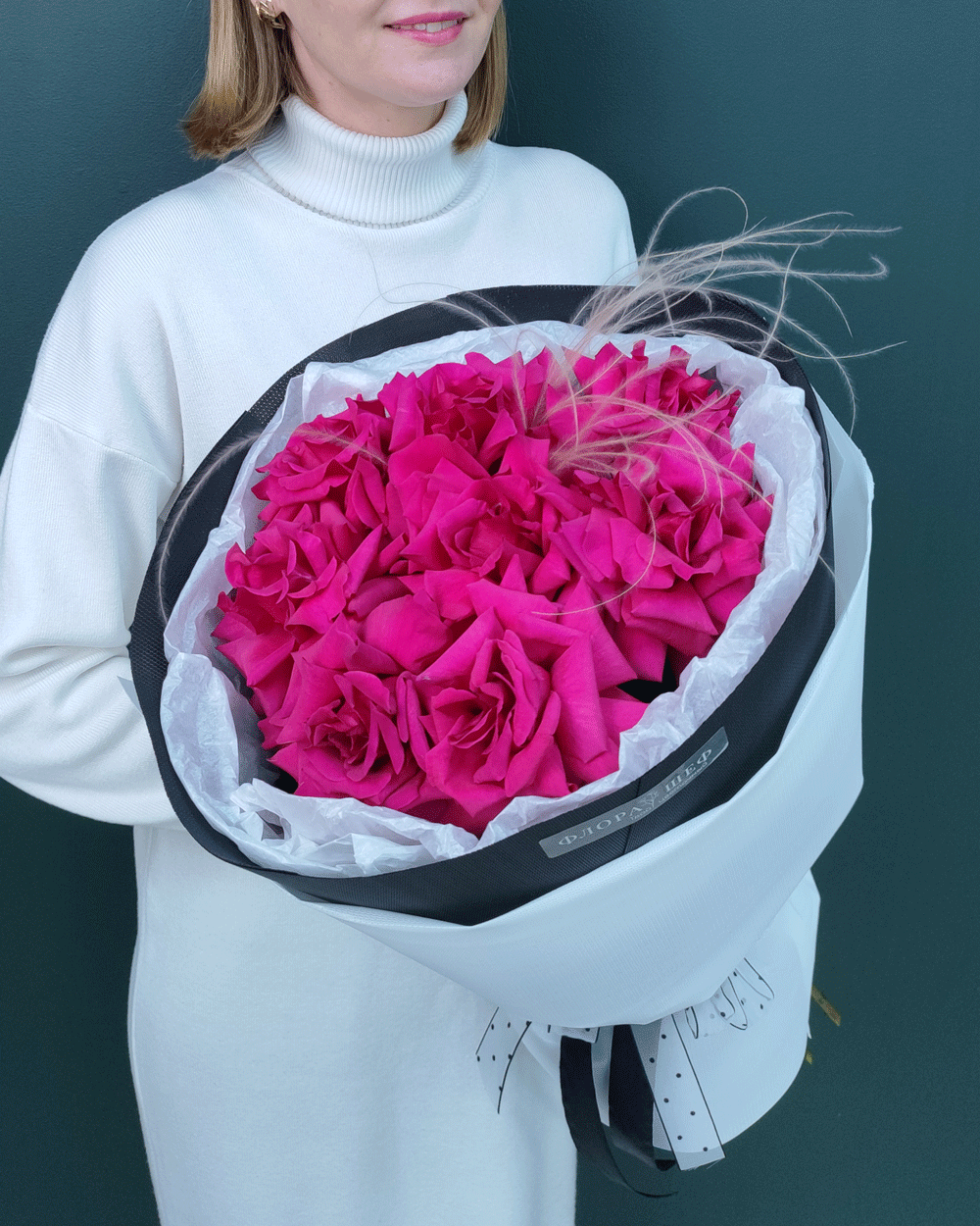 Яркий букет из малиновой французской розы подойдёт для дня рождения, признания в чувствах или эффектного комплимента. Насыщенный оттенок и крупные бутоны делают композицию выразительной и запоминающейся.