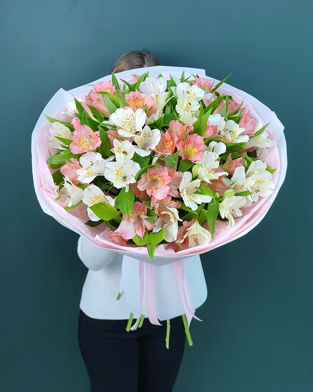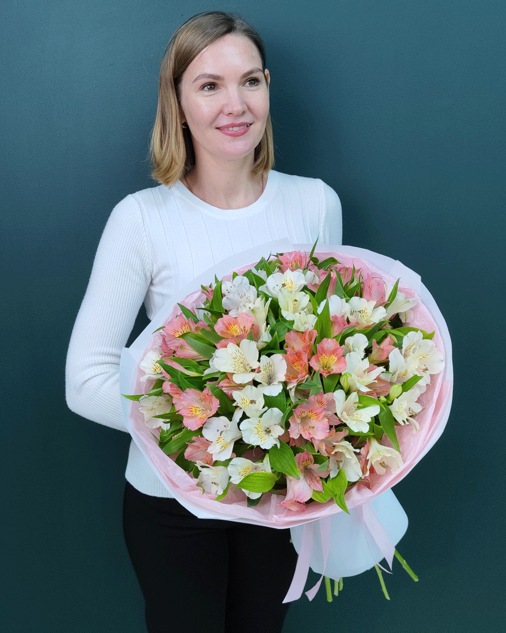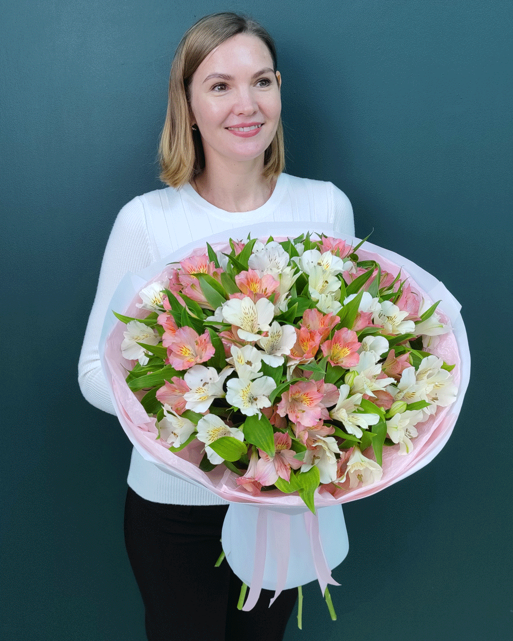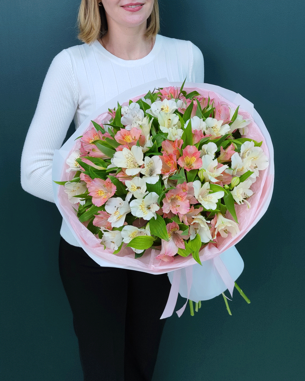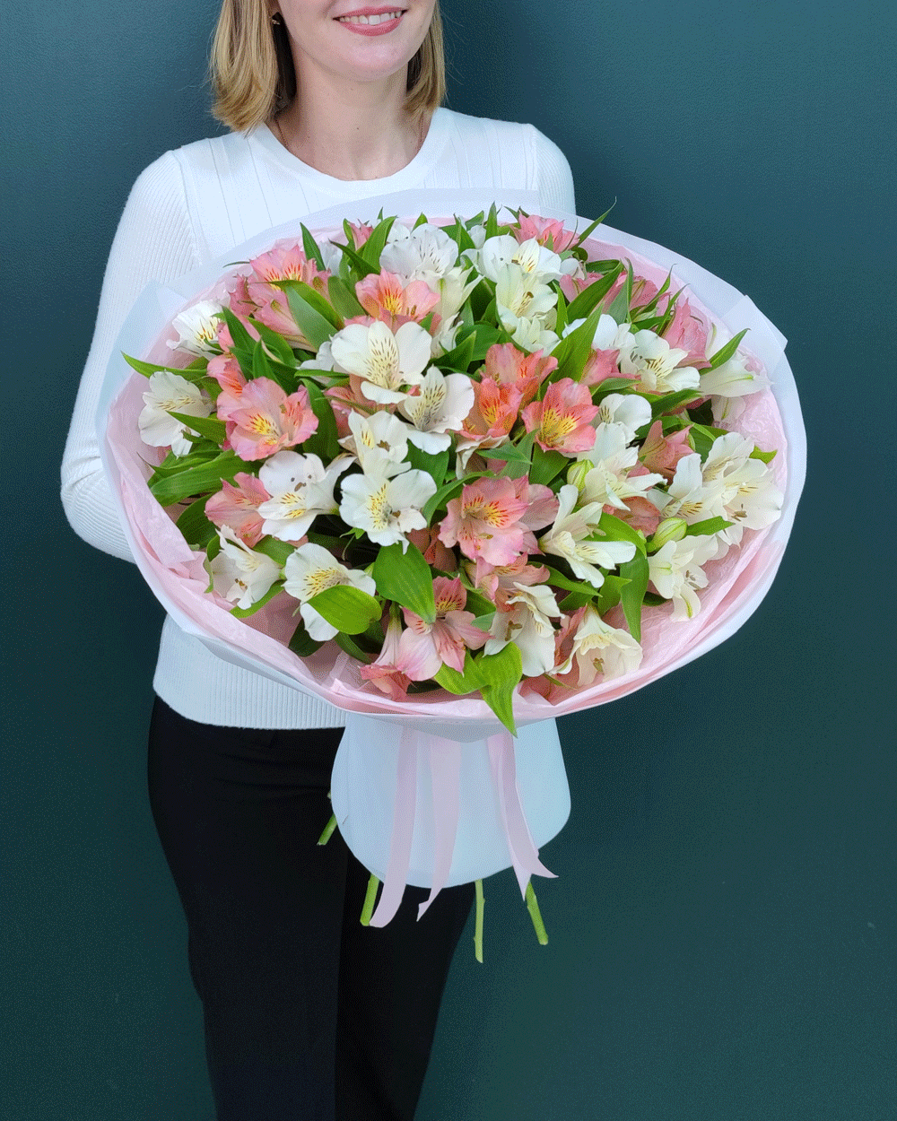 Нежный букет из 15 белых и розовых альстромерий – идеально подходит для дня рождения, 8 марта, романтического сюрприза, выписки из роддома, благодарности, свадебных композиций или просто чтобы выразить свои теплые искренние чувства изящным жестом.