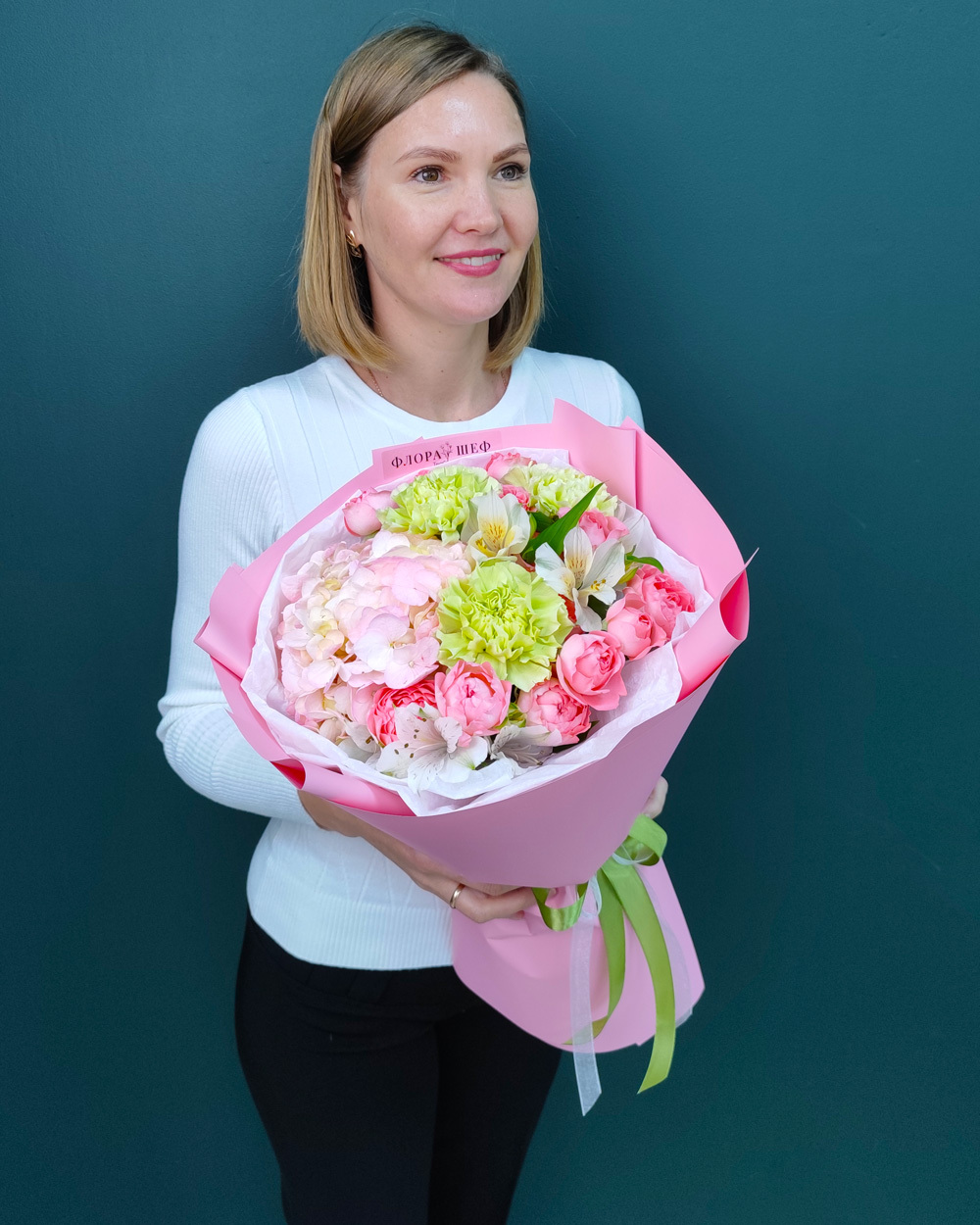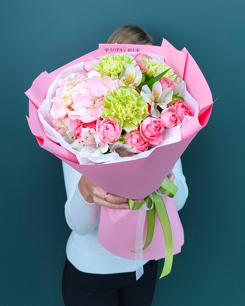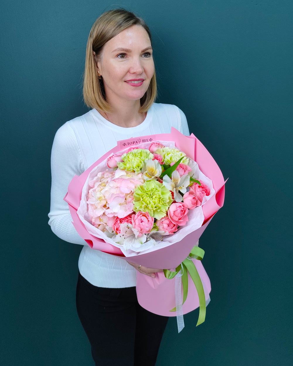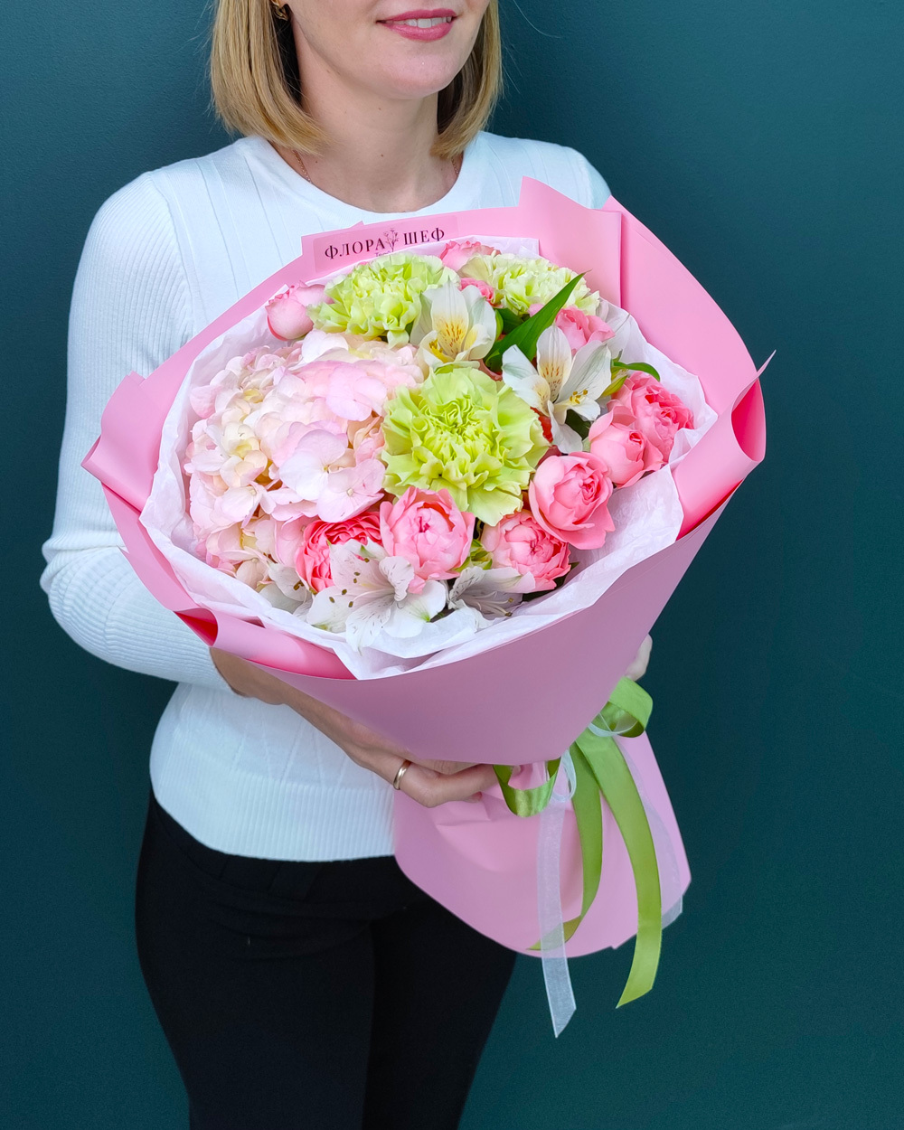 В «ФлораШеф» букеты доставляются на воде, чтобы сохранить свежесть дольше. К каждому заказу прилагаем бесплатную открытку, инструкцию по уходу и подкормку для цветов.