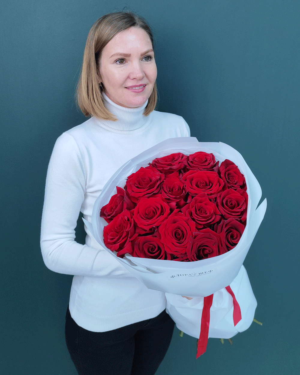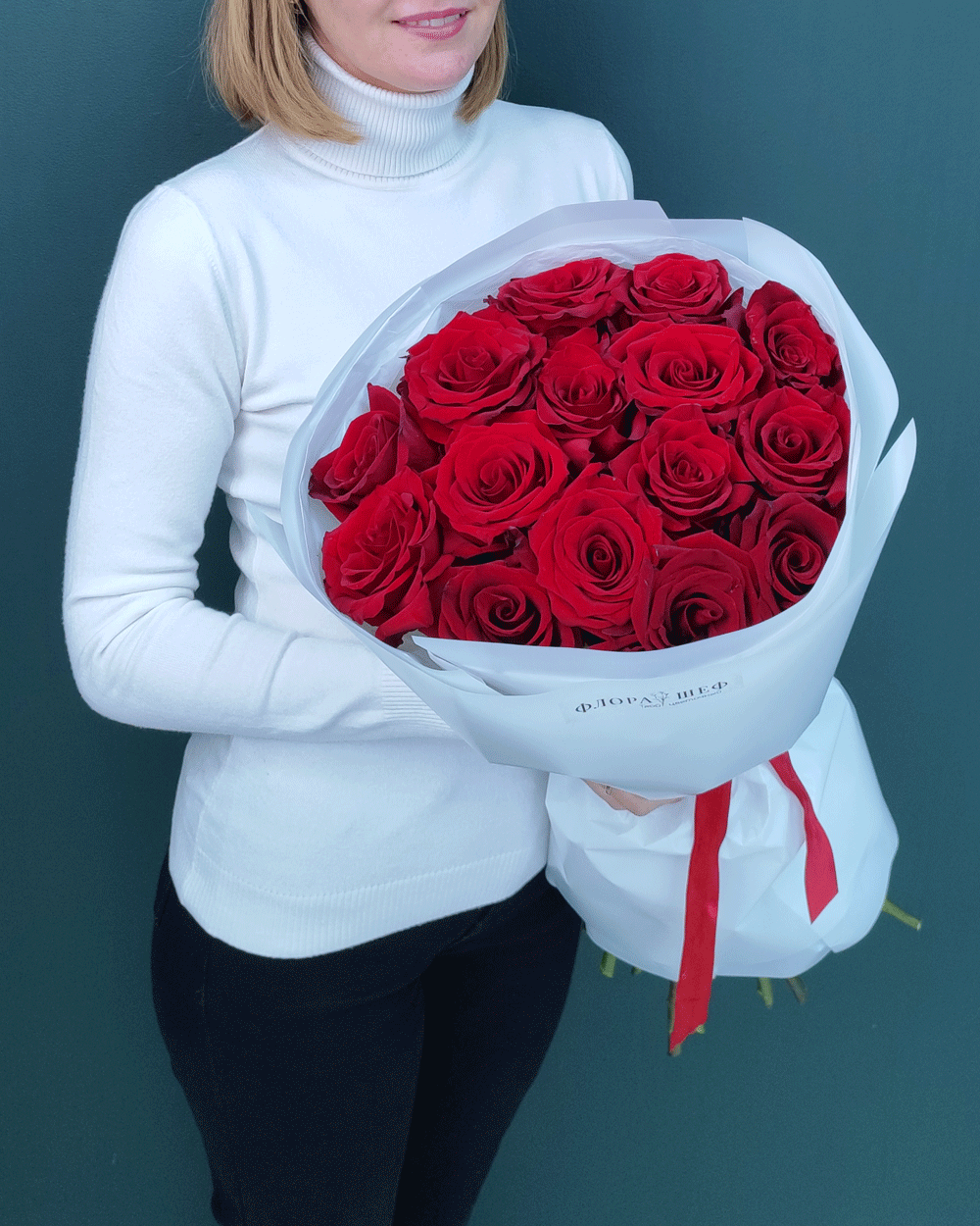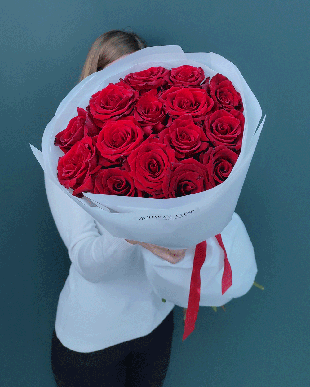 Выразительный букет из 15 красной розы сорта Эксплорер подойдёт для дня рождения, романтического подарка или важного признания. Насыщенный цвет и аккуратная форма бутонов делают композицию эффектной и уместной для любого повода.