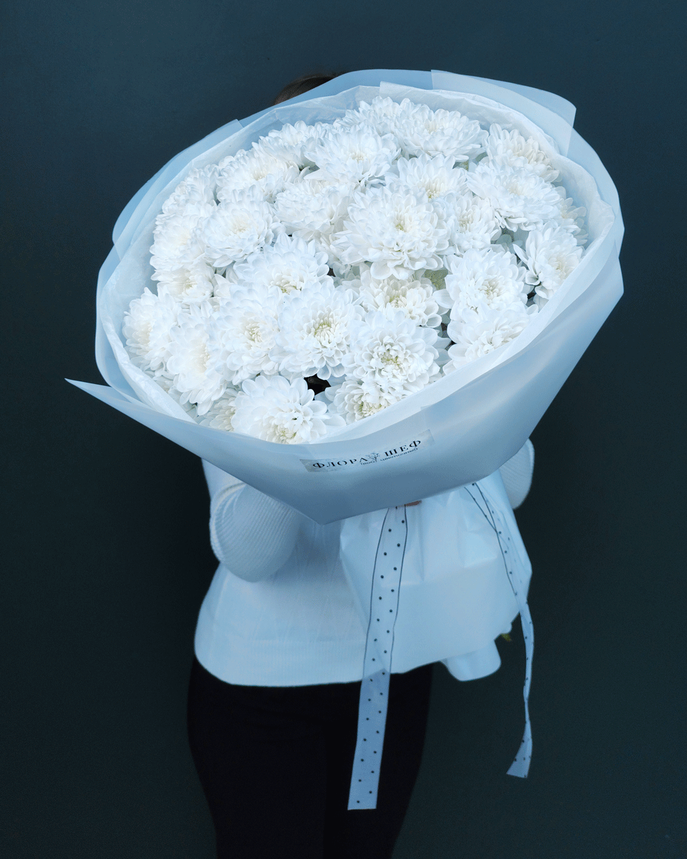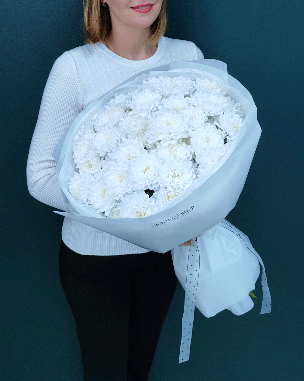 Воздушная белая кустовая хризантема отличается исключительной стойкостью и является одним из самых долговечных цветов – сохраняет свежесть до 2 недель, радуя получателя своей естественной красотой и жизнерадостностью.